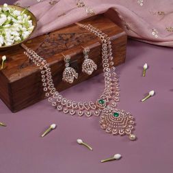Diamond and gemstone necklaces are much in demand. While gold jewellery is mostly associated with functions and engagements, gemstone and diamond necklaces are versatile. We make available our varied collections of diamond necklaces online, which makes it easier to choose from and purchase with the swipe of a button.