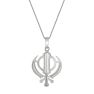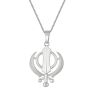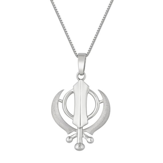 This is a platinum khanda double-edged sword flanked by two single-edged swords, symbolizing divine knowledge and power.
