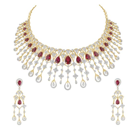 Embrace regal charm with this magnificent diamond necklace set, designed for royalty.