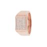 This diamond studded ring features a clean, smooth surface and a minimalist design for the contemporary man.