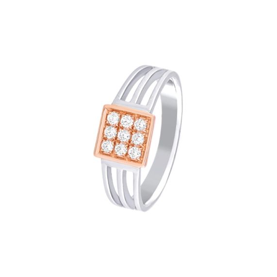 Designed gloriously and embellished with a cluster of diamonds is this men's ring in 950Pt platinum and 18Kt rose gold, a symbol of attractiveness