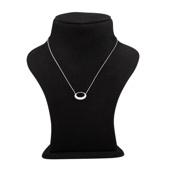 Crafted in lustrous platinum, this delicate necklace showcases a brilliant diamond setting. Its minimalist design ensures that the diamond’s sparkle takes center stage, offering a refined and graceful addition to your jewelry collection