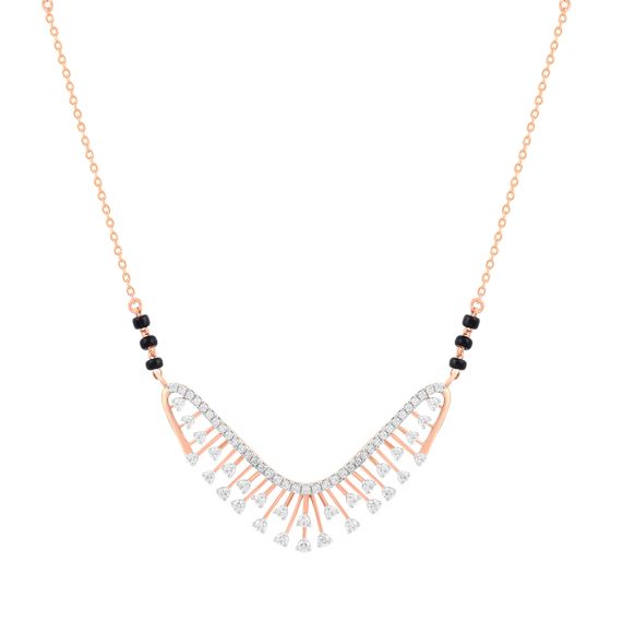 Pair it with traditional or contemporary outfits, you'll never go wrong with this attractive swirl design diamond tanmaniya made from 18Kt rose gold