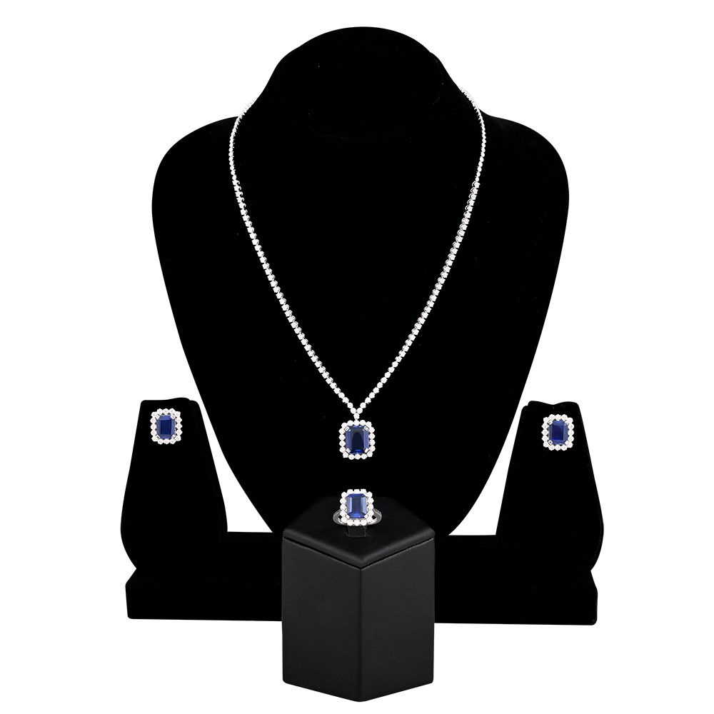 Uniquely set blue gemstones and diamonds in an 18Kt white gold studded Crown Star pendant necklace set, add sparkle to your party wear ensemble