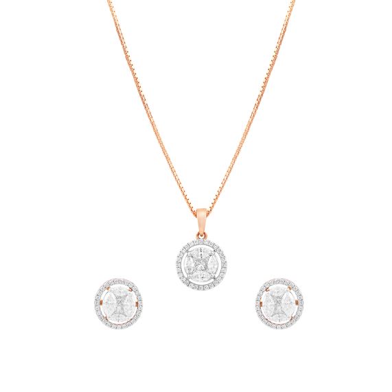 Breathtaking Diamond Pendant and Earring Set on 14Kt Rose Gold