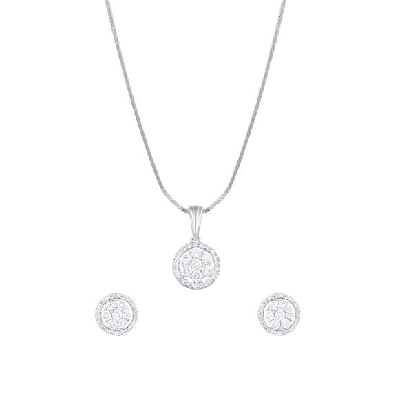 Design sits daintily on this pendant set, made with 950Pt platinum in a glossy finish