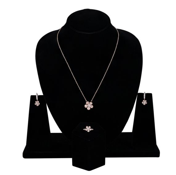 This beautiful floral necklace set designed in diamonds crafted from 18Kt rose gold, is one gift that will make your loved one feel cherished