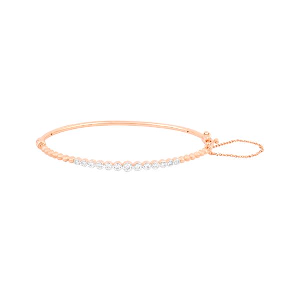 Adorn her wrist with blush brilliance. This rose gold diamond bracelet dazzles with a cascade of shimmering diamonds.