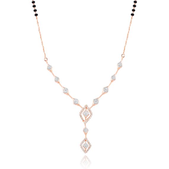 A contemporary take on traditional jewellery, this 18Kt rose gold mangalsutra, studded with geometric diamonds, is perfect for women seeking something unique. Designed to complement both Indian and Western outfits effortlessly.