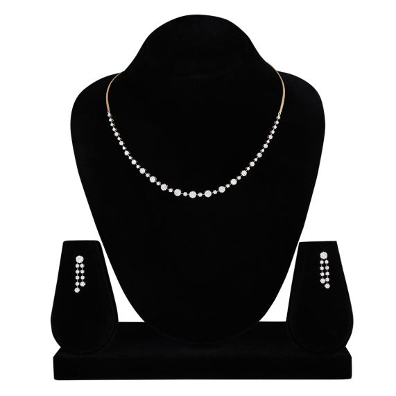 This stunning 18Kt yellow gold necklace set features a beautifully graduated arrangement of shimmering diamonds, exuding elegance and sophistication. The timeless design seamlessly blends classic charm with modern allure, making it the perfect choice for any special occasion.