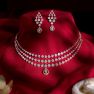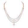 If you adore a royal look with understated elegance, this 18Kt rose gold necklace set with a delicate drop design is a must-have. Crafted to enhance your natural glow, it will make you feel like royalty, exuding grace and sophistication.