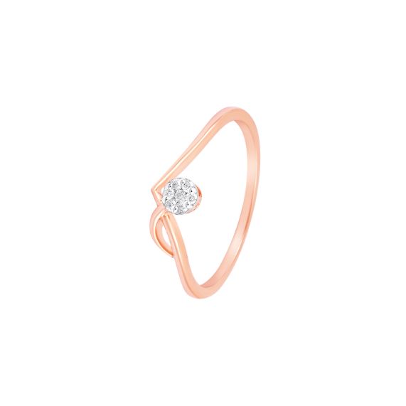 This 14Kt rose gold ring features a sleek V-shaped design with a circular centerpiece, elegantly studded with diamonds. Minimal yet chic, it’s the perfect accessory for everyday wear, adding a touch of subtle sophistication to your look.