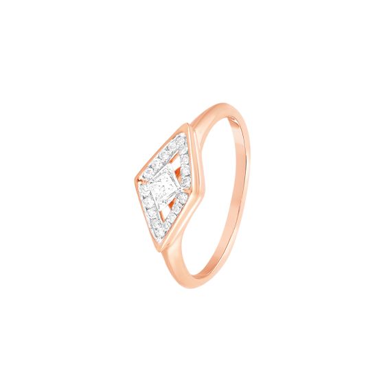 This 14Kt rose gold ring features a bold geometric design, enhanced with sparkling diamonds for a touch of refinement. Perfect for everyday wear, it combines contemporary style with subtle elegance, adding a timeless allure to any outfit.