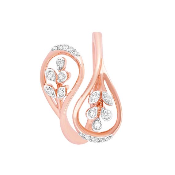 This 14Kt rose gold ring features a beautiful intertwined paisley design at the center, enhanced with shimmering diamonds for a touch of elegance. Perfect for everyday wear, its intricate pattern adds a unique and sophisticated charm to your look.