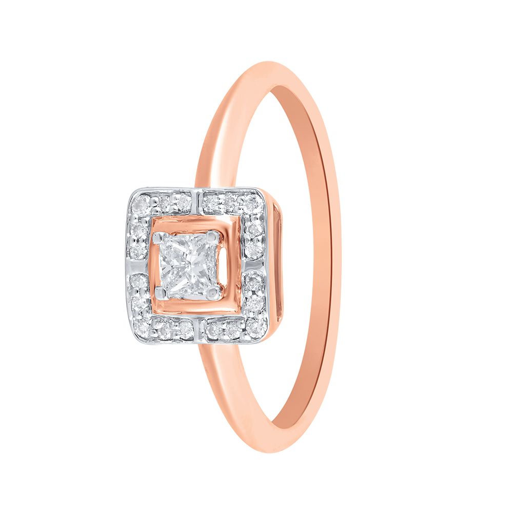This 14Kt rose gold ring showcases a sleek square design at the center, adorned with sparkling diamonds for a touch of sophistication. Ideal for everyday wear, its modern yet elegant style adds a refined and timeless appeal to your look.