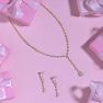 Crafted in 18Kt rose gold, this exquisite necklace set showcases diamond-studded circle motifs that exude refined elegance. Ideal for festive gatherings or evening soirées, it frames your neckline with a graceful elongating effect and completes your look with a sophisticated sparkle.