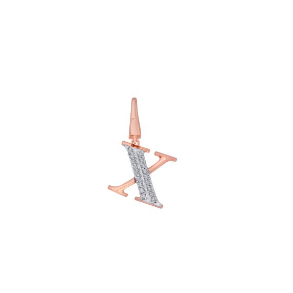 A single line of diamonds adorn this beautiful X alphabet pendant in 14Kt rose gold