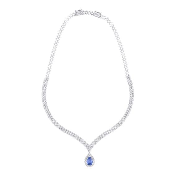 Wear this 18Kt white gold Crown Star necklace with a dazzling array of diamonds, to add a touch of glamour to your evening attire.
