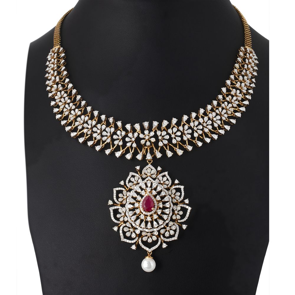 The lustre of 18Kt yellow gold is accentuated by this pretty strand diamond necklace, elevating the look of your outfits
