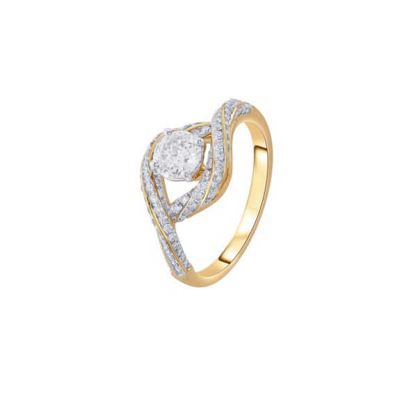 Designed like an eye at the center of which are sparkling diamonds, is this 18Kt yellow gold Crown Star finger ring