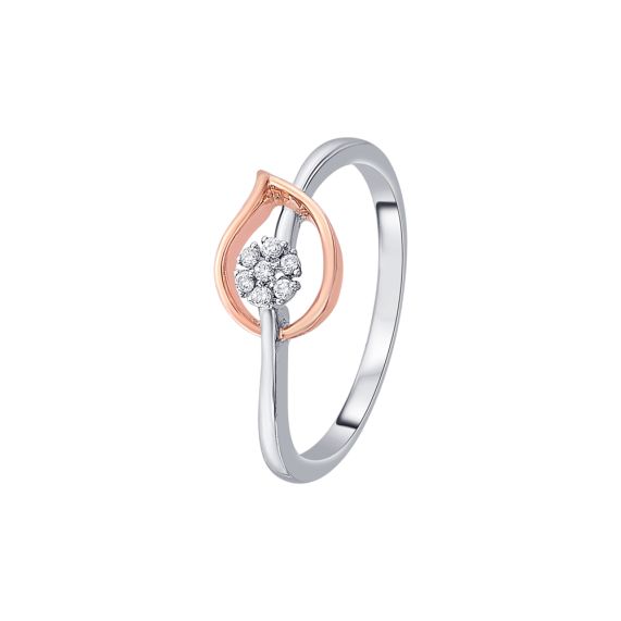 A delicate leaf studded with diamonds adorns this stylish 18Kt rose gold and 950Pt platinum finger ring