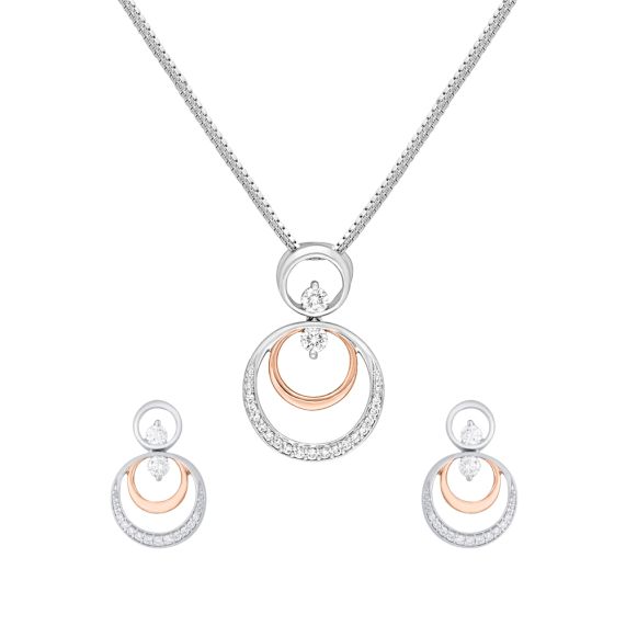 This pendant set exudes timeless sophistication, crafted in luminous platinum and studded with diamonds for a look that captivates with every glance.