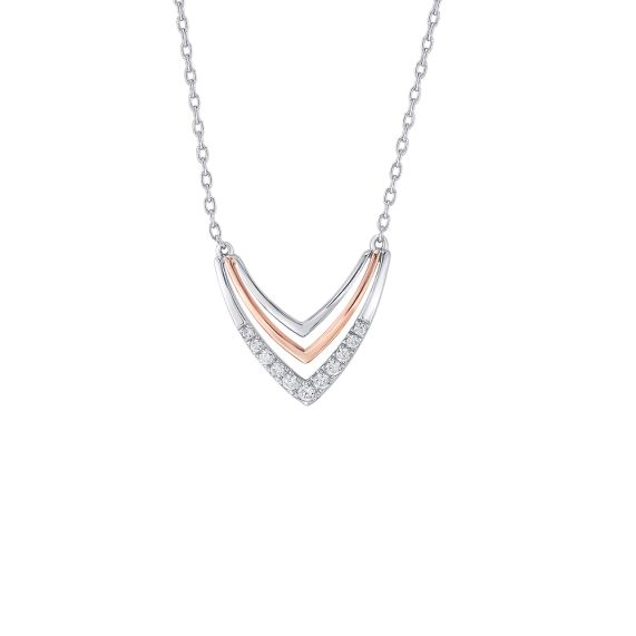 A keepsake for days when you want a 'pick me up', is this diamond and platinum chevron design necklace in 950Pt