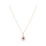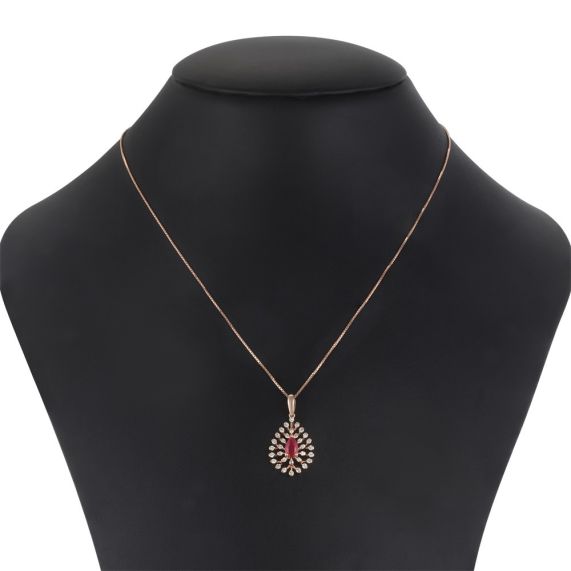 Walk into scintillating evenings looking like the diva you are, with this stunning 18Kt rose gold, diamond and red stone pendant with chain