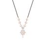 Exquisite to behold is this delicate diamond studded mangalsutra crafted in 18Kt rose gold, sitting lightly on your neck this festive season