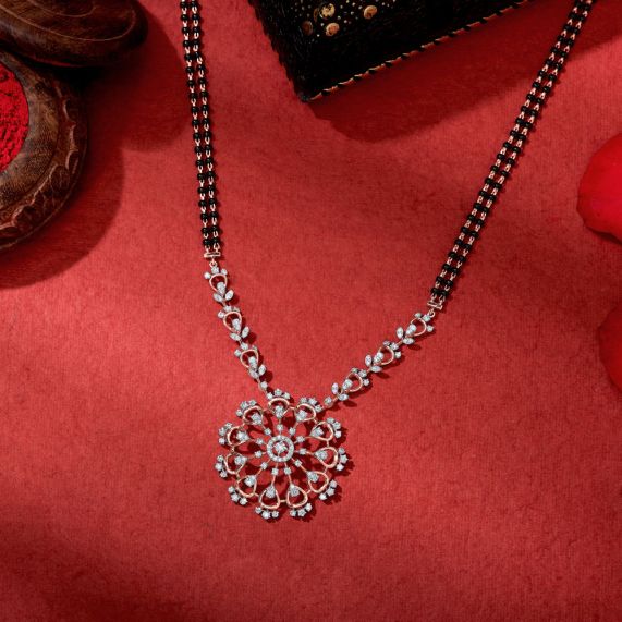 Sparkle like a star in this radiant pendant style floral diamond mangalsutra in 18Kt rose gold