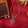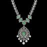 A necklace and earrings set for all seasons, this gorgeous jewellery in 18Kt yellow gold, diamonds and green onyx is carefully crafted with leaf designs to complement special occasions