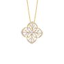With a glorious floral 4-leaf clover design, this 18Kt yellow gold diamond earrings and pendant set is sure to turn heads.