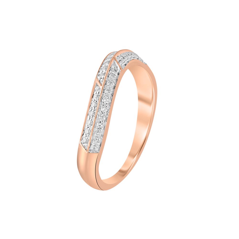The simple curved lines of this finger ring in 14Kt rose gold studded with diamonds, is both charming and unique