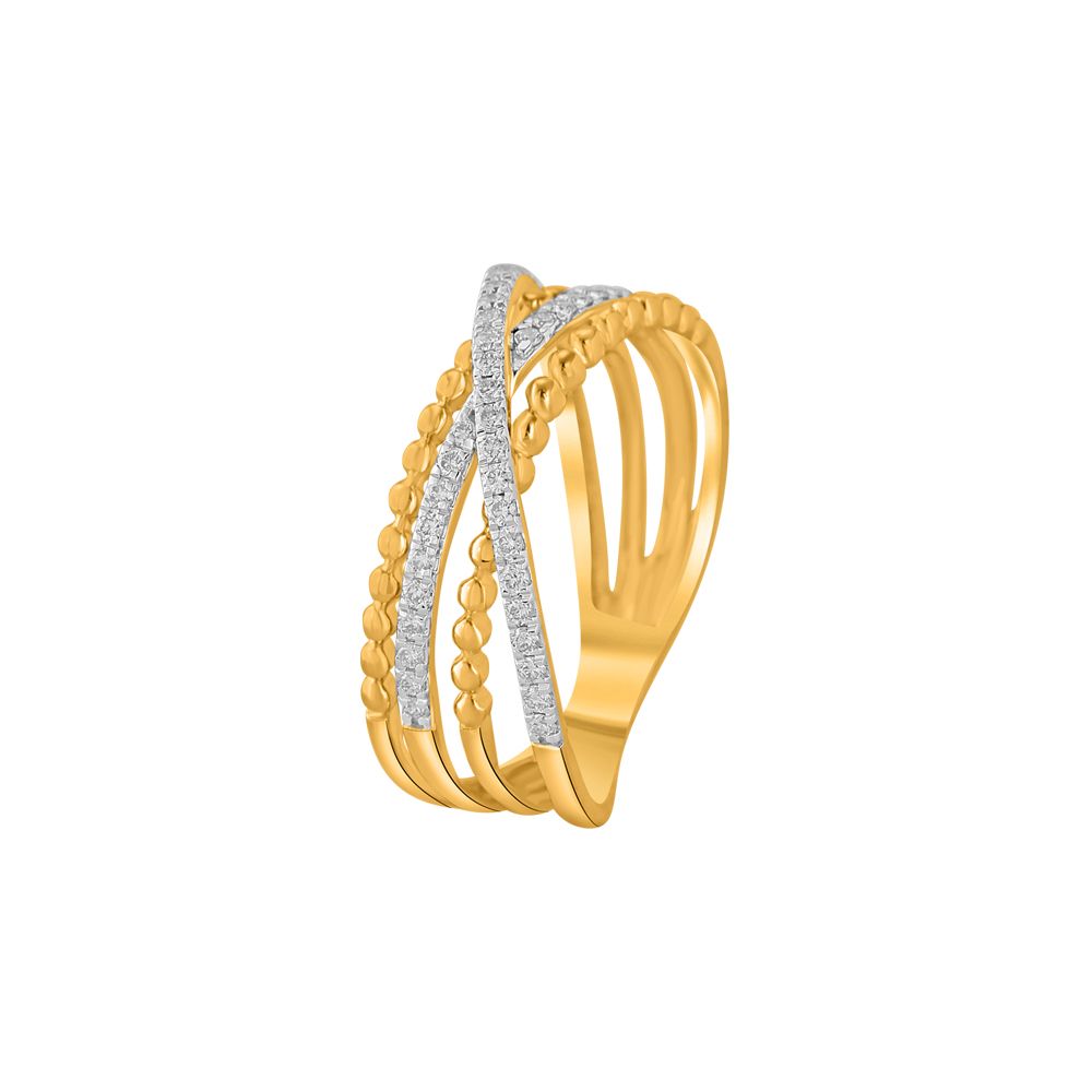 Crisscross design comes together in this exquisite diamond finger ring crafted in 18Kt yellow gold