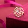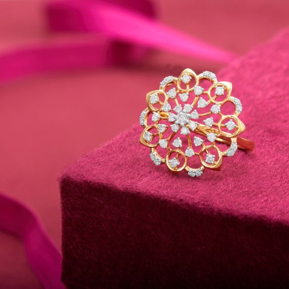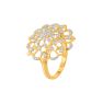 Dazzling diamonds intersperse the opened flower pattern of this finger ring in 18Kt yellow gold