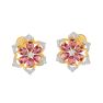 Showcase yourself in your best by donning these elegant earrings with diamonds and synthetic pink rubies, set into 18Kt yellow gold