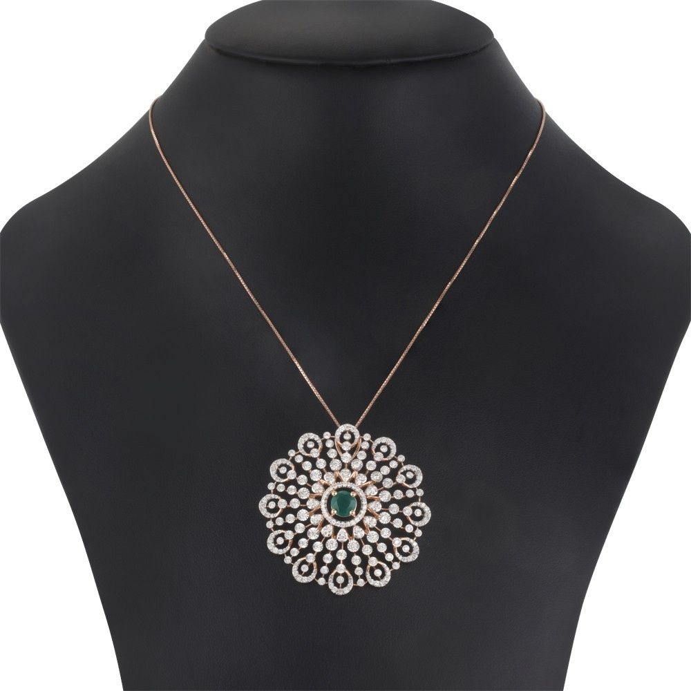 A simple green onyx and diamond pendant crafted in 18Kt rose gold, is all you need to make a stunning style statement for a special evening