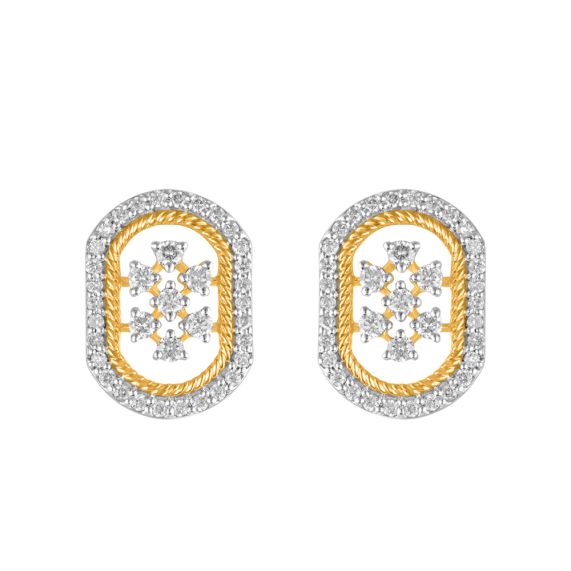 This contemporary geometric pattern 18Kt yellow gold earrings set centered with diamonds, is inspired by architectural brilliance