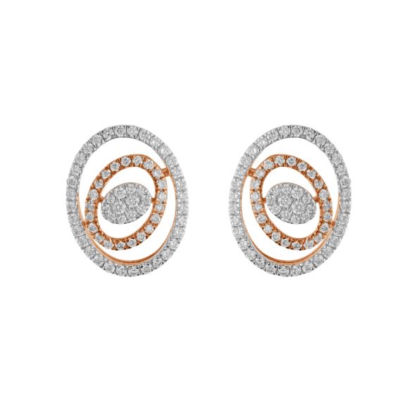 These 18Kt rose gold earrings studded with diamonds in a cluster design, pair well with contemporary wear