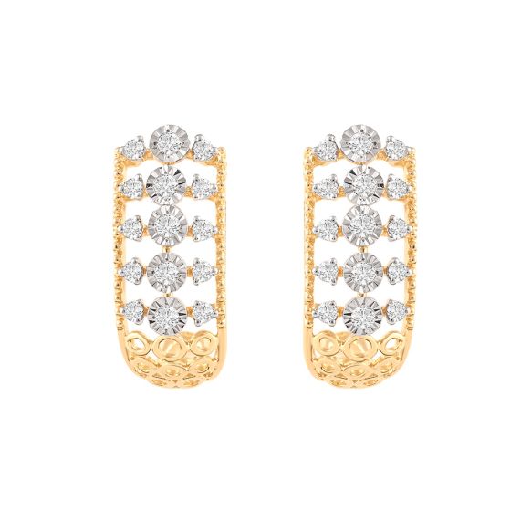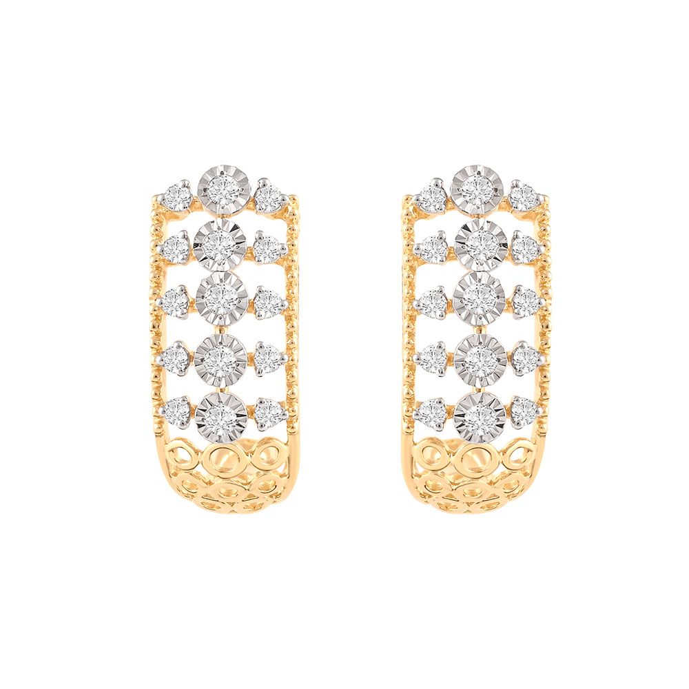 These diamond studded hoop earrings exude subtle luxury in 14Kt yellow gold, an ode to style