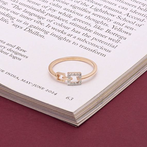 A 14Kt rose gold finger ring studded with dazzling diamonds in a geometric design, makes for a wonderful gift to someone you love