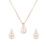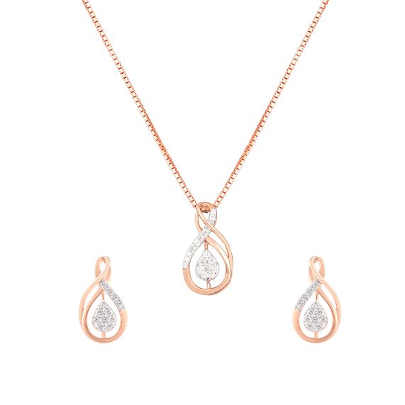 The rose gold metal in 14Kt found in this swirld design pendant set, is perfect for a modern and contemporary look.