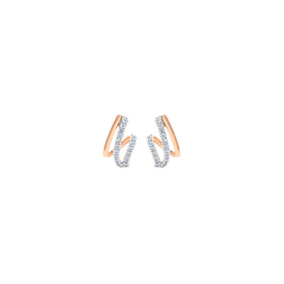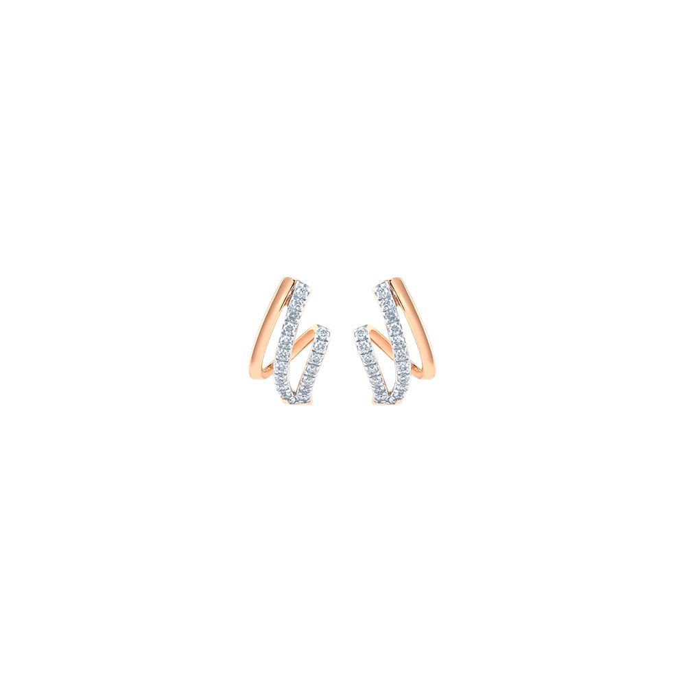 Studded with diamonds are these 14Kt rose gold J hoop earrings, the only accessory you need for modern attire