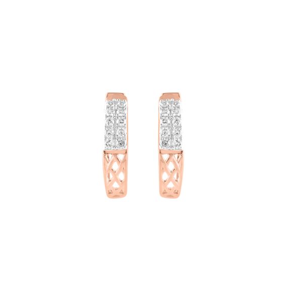 Diamonds and 14Kt rose gold meet in this intricate lattice pattern hoop earrings set, making it unmatched and exceptionally beautiful