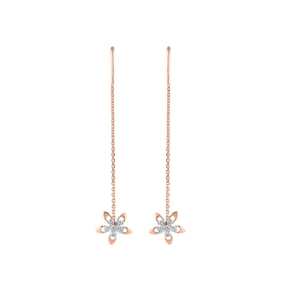 Made with a flourish these diamond studded floral sui dhaga earrings in 14Kt rose gold, pair well with any outfit for special occasions