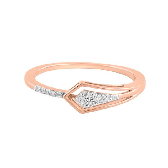 Designed in a modernistic geometric design, is this diamond encrusted finger ring in 14Kt rose gold